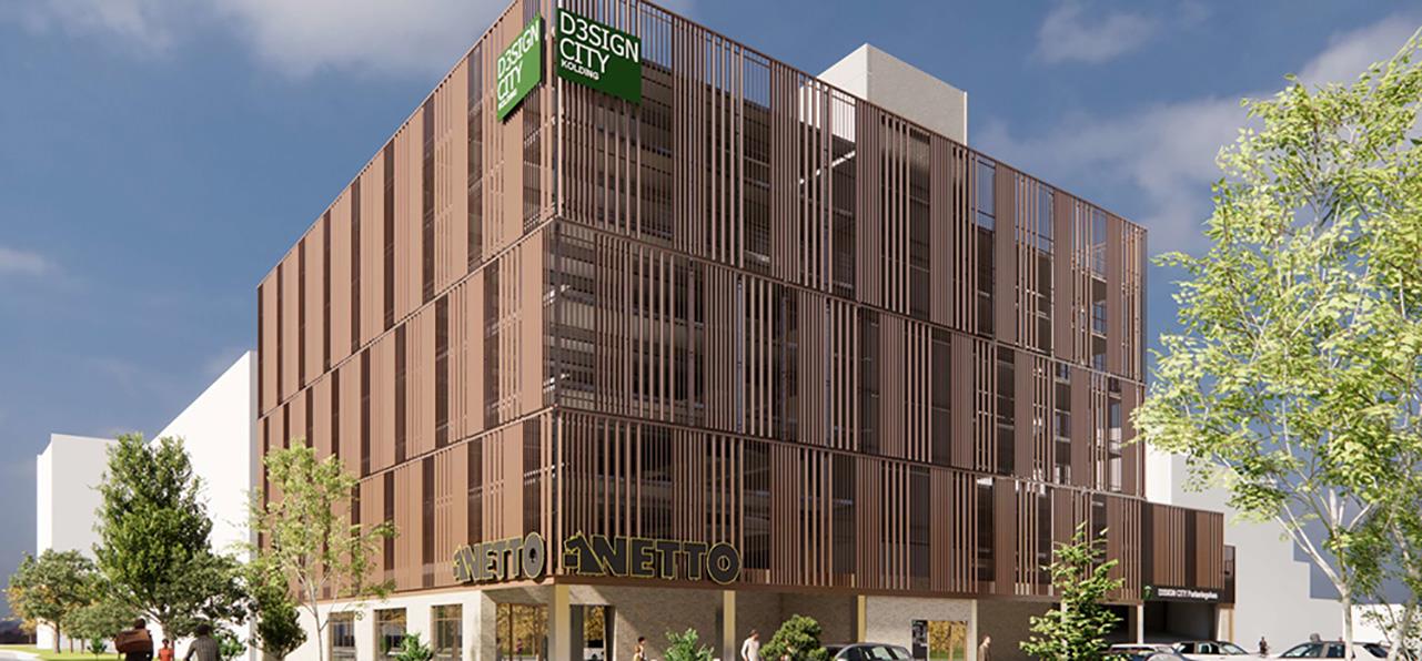 DS Flexhal opfører parkeringshus og butiksbyggeri for Bjert Invest som en del af den fortsatte udvikling af Design City Kolding. Projektet indgår i et større byudviklingsområde, der i forvejen rummer boliger, uddannelsesinstitutioner og erhverv, og som i de kommende år udvides med hotel, dagligvarebutik og nye parkeringsfaciliteter.